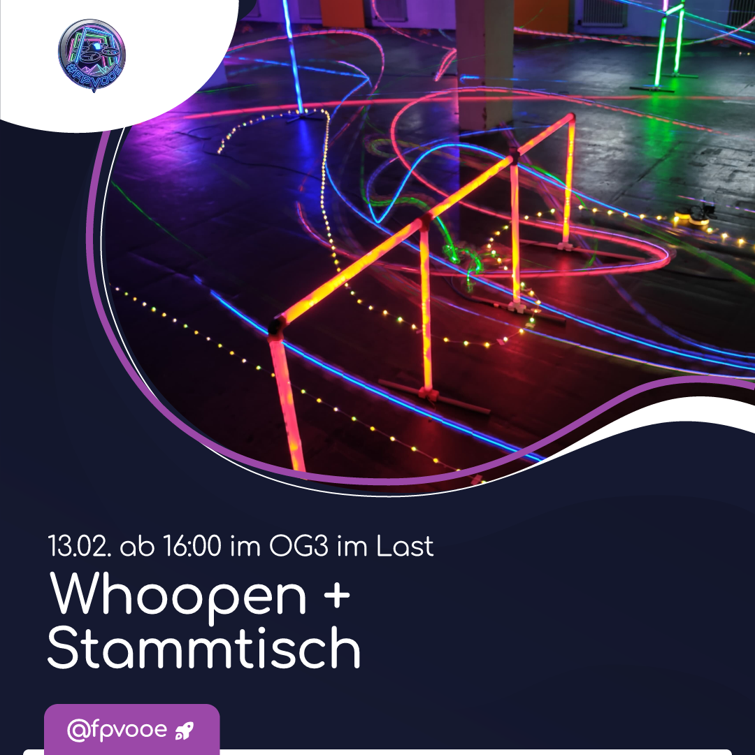 Mitnahme minderjähriger Personen gestattetDie FPV-Community in OÖ ist wieder mit einer feinen kleinen LED-Whoop-Strecke am Start!